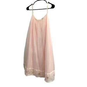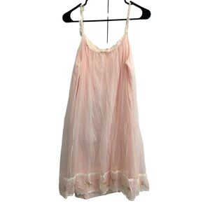 Vintage Vanity Fair Pink Nylon Tricot Slip Dress Baby Doll Floral Lace NIghtgown