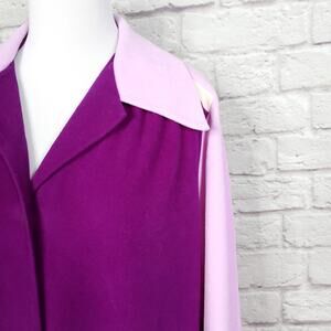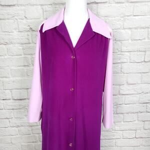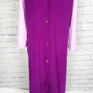 Vintage Vanity Fair Purple House Coat Robe Polyester Velour Button Front Sz 14
