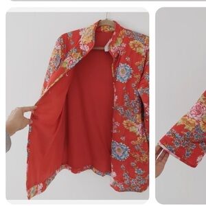 Vintage Vanity Fair Red Floral Tricot Lounge Blazer Jacket