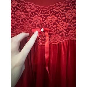 Vintage Vanity Fair Red Lace Nightgown Pajama Sleep Shirt Made in USA Medium