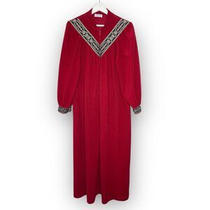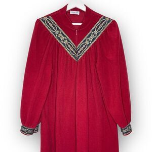Vintage Vanity Fair Robe Red Velour Zip Up Long Sleeve Women’s Size Medium