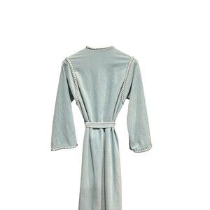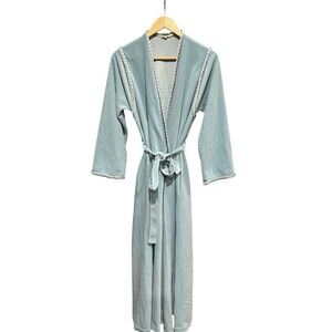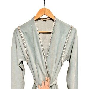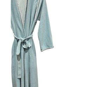Vintage Vanity Fair Robe Turquoise Blue Braided Detail Size Small Floor Length