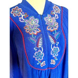Vintage Vanity Fair Royal Blue Embroidered Zip Robe Lounge Dress Made in USA L/X