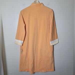 Step back in time with this NWT Vanity Fair Shevelva robe in “Orange Ice.” Designed in their exclusive Dacron polyester fabric, this lounge coat has the soft, velour-like feel of velvet with easy care, wrinkle resistance, and a rich mid-century vibe. Features a zip front, ivory trim accents, and a relaxed A-line silhouette. Truly a rare deadstock find with the original tags still attached.