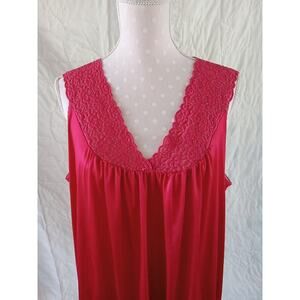 Vintage Vanity Fair Short Nightgown Large Dark Pink Nylon And Lace Trim USA