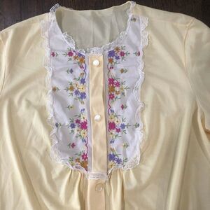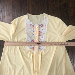 Vintage Vanity Fair Robe Button Front Soft Yellow Sz 38 Nylon Embroidered Accents.