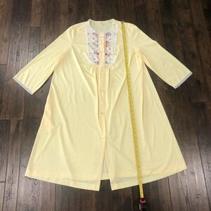 Vintage Vanity Fair Size 38 Yellow Button Nylon Robe Embroidered Grannycore
