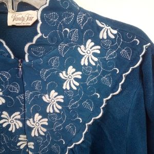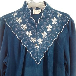 Vintage Vanity Fair Velour Blue Floral Half Zipper House Coat Pajama Moo Moo L