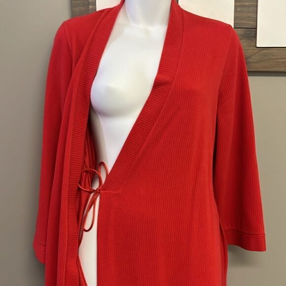 Vintage Vanity Fair Vibrant Red Full-Length Ribbed Wrap V-Neck Robe with Belt-Sm