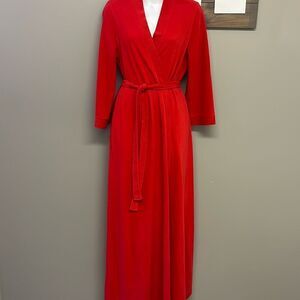 Vintage Vanity Fair Vibrant Red Full-Length Ribbed Wrap V-Neck Robe with Belt- Small