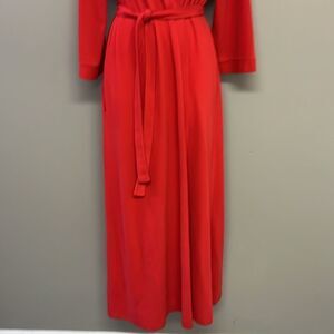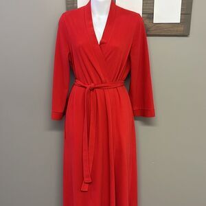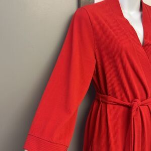 Vintage Vanity Fair Vibrant Red Full-Length Ribbed Wrap V-Neck Robe with Belt- Small