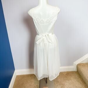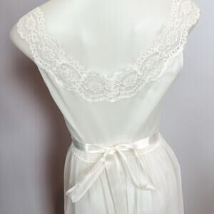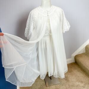 Vintage Vanity Fair White Ruffle Lace Bridal Robe & Slip Nightgown Set – XS (30)