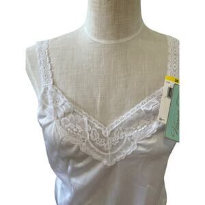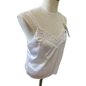 New Vintage Vanity Fair White lace trim camisole, size 36. 100% nylon, bright white