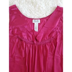 Vtg 90’s Vanity Fair Women’s L Dark Pink Satin Front Night Gown Sleeveless EUC.