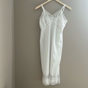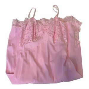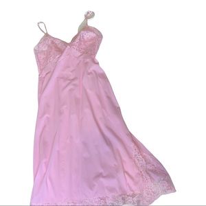 Pretty in Pink Vintage Slip. Could be worn as Lingerie or Nightgown. Nice Vintage condition— one strap is a little twisted. Gorgeous color size 34. Vanity Fair.