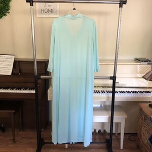 Vintage Vanity Fair XL Teal Blue Quilted Applique Nightgown Button Down Made USA