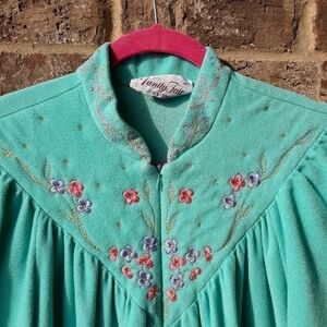 Great vintage robe / housecoat. Has pockets and great floral embroidery. Some of the stitches are coming loose. See pics