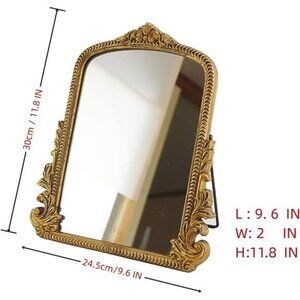 【Retro & Ornate design】- The overall dimensions of this small standing mirror is 11.8 * 9.6 inches, the table top mirror is made of durable wooden material with a fabulous antique gold finish for an elegant centerpiece or display accent. This is hand-finished craftsmanship, each piece may vary in appearance.