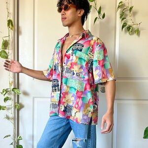 Vintage Vaporwave-Style Button-Down Shirt