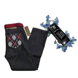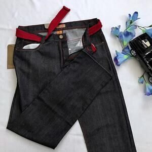 NWT. Regular Fit Jeans for Men Various Sizes. Black Wash, 5 pockets design, back pockets has embroidered design, red and white stitching accent, comes with a belt. Pictures are part of description.