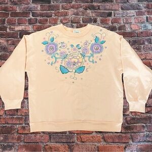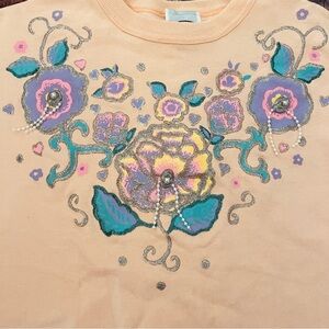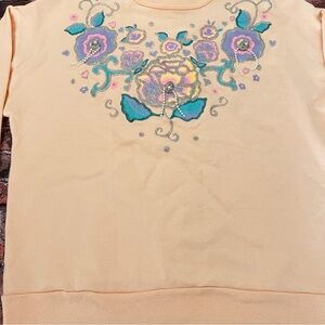 Vintage Variety Pastel Painted Beaded Pearl Sweatshirt M Coastal Grandma Peach