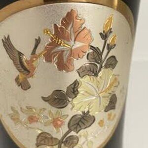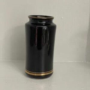 Vintage Vase ''Art of Chokin'' Black with 22' Karat Gold Trim with Floral Japan