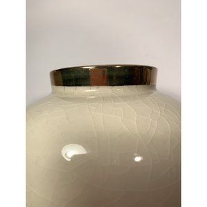 Vintage Porcelain Cream Vase From Japan With Flowers - Gold trim on top & bottom