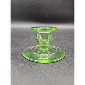 Vintage Vaseline Glass Candlestick Holder 2.5" Green Glow Glass