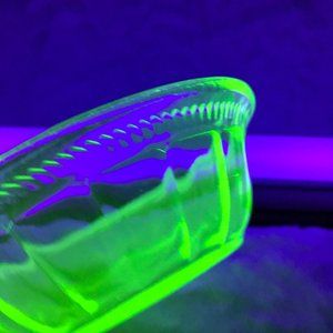 Vintage Vaseline Glass Dessert Bowl Block Optic #26