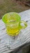 Vintage Vaseline Uranium Glass Childs size Mug Cup embossed Cat in Basket on one side and I believe it is a dog on the other side, embossed pressed glass, leaves, and floral design on the bottom. Holds water see video.