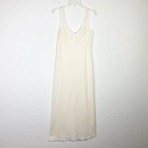 Vintage Vassarette Cream Ivory Lace Trim Slitted Back Hem Maxi Slip Dress Sz S