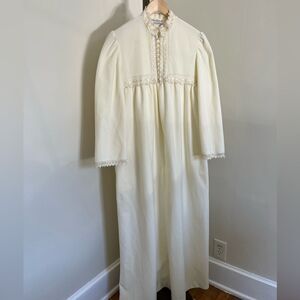 Vintage Vassarette Cream Lace Trim Maxi Nightgown High Neck Long Sleeve S-M