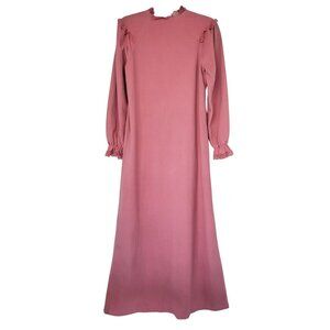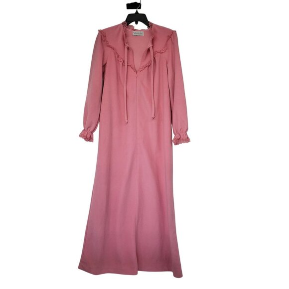 Vintage Vassarette Velvelour Velvet Pink Lace Ruffle House Coat Robe 1970s