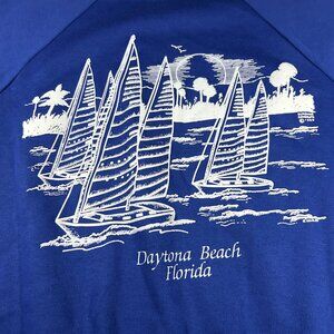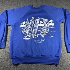 Vintage Vaurnet France 90s Made in USA M Crew Neck Sweater Blue Daytona Beach