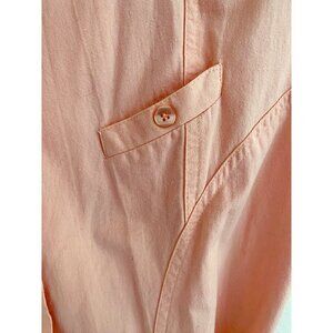 YOU WILL FALL IN LOVE WITH THIS DRESS. A true vintage gem from Veeko Super Style, this peach-toned dress is equal parts feminine and structured. The tailored cut, belted waist, and button details give it a timeless, high-quality finish.