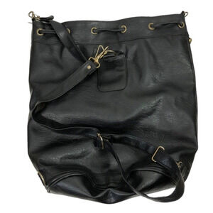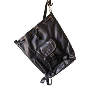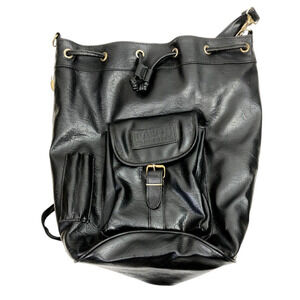 Vintage Vegan Leather Bucket Bag Backpack Sling Purse Black Paris Sport Club 15"
