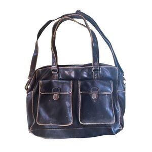Vintage Vegan Leather messenger book bag. Detachable long strap & double handle