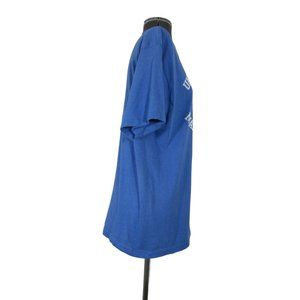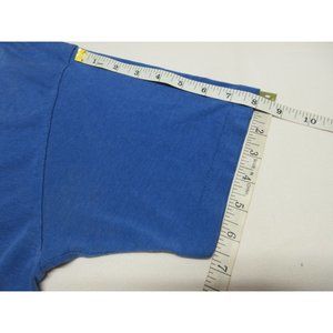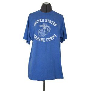 Vintage, single stitch short sleeve tee in a medium blue with large United States Marine Corps print on front.