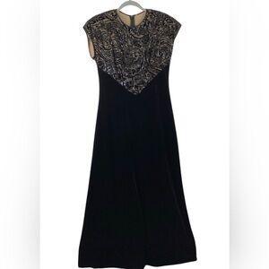 Vintage Velvet And Lace Black Midi Aline Dress Size Medium