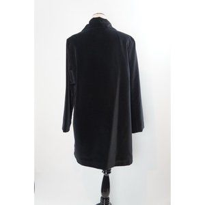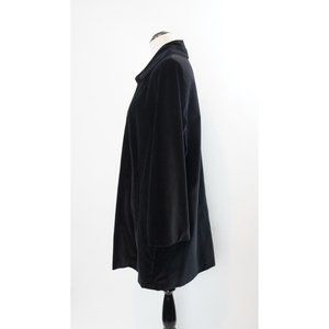 This gorgeous coat will dress up your look this season. The velvet is a medium thickness, and the adorable rose pin comes with it if you want it. Fully lined. Made in Korea. You can see a faint trace of the word "sample" written in the inside lining under the label.