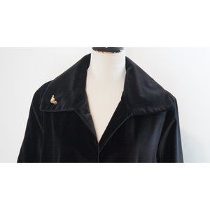 Vintage Velvet Coat, Winter Swing Coat, Knee Length Parka, Black, Bernardo