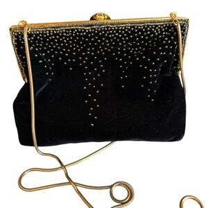 Vintage Velvet Evening Bag Gold Snake Chain and Stunning beaded detail