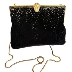Vintage Velvet Evening Bag Gold Snake Chain and Stunning beaded detail. Good preowned condition, gold & rhinestone detail closure