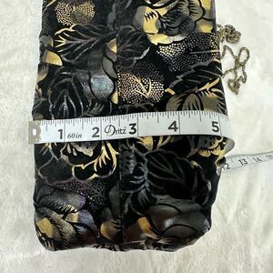 Vintage Velvet Fabric Dark Floral Evening Handbag Corsage Applique Chain Strap