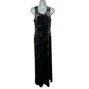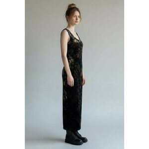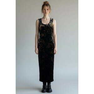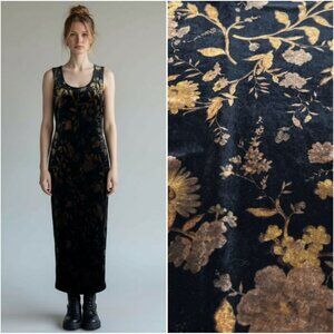 Vintage Velvet Floral Column Maxi Dress Evolution not Revolution Black Gold XS/S