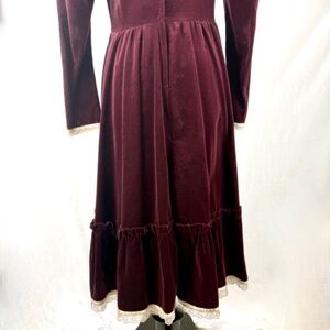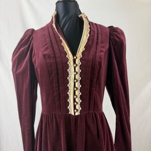 Vintage Velvet Gunne Sax Prairie Dress 13 M Purple Midi Pearl Buttons Lace Tucks