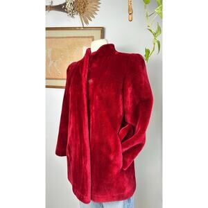 Add a pop of luxury to your wardrobe with this vintage red velvet open-front jacket. Featuring a vibrant hue, soft velvet texture, and silky satin lining, this jacket exudes elegance. Perfect as a statement piece for evening events or layering over your favorite outfits for a touch of glamour.
