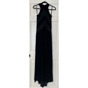 Vintage Velvet Maxi Dress Women 8 Black Halter Stripe Goth Vampy HOCO Prom