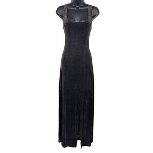 Vintage Velvet Maxi Slip Dress Women Size S Formal Side Slit 90s Romantic Retro