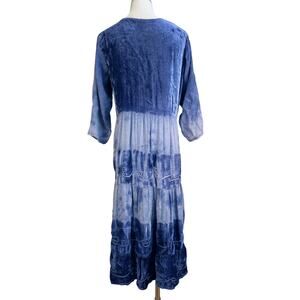 Vintage Velvet Midi Tiered Dress Blue Tie Dye Whimsical
